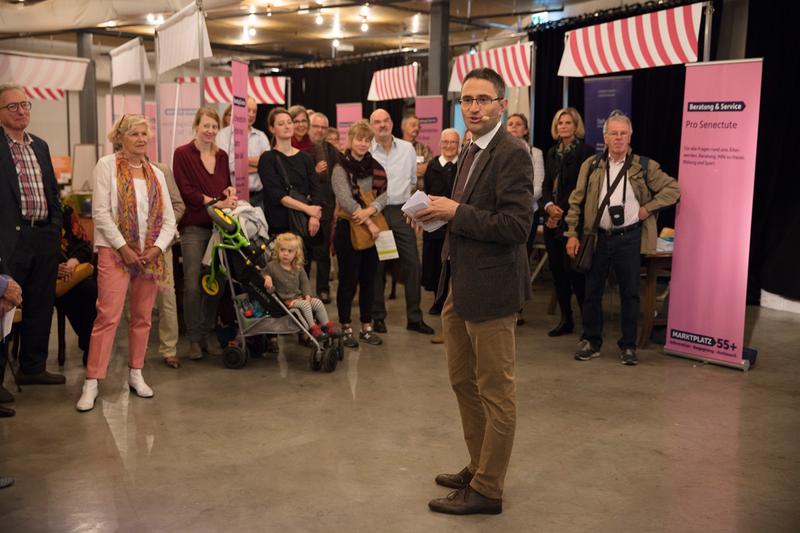 Zur Freude aller Beteiligten – Standbetreibern, Organisatoren, Patronatskomitee und auch der Verantwortlichen der Markthalle – war die erste Auflage des Marktplatz 55+ ein grosser Erfolg! In seiner Eröffnungsansprache betonte Regierungsrat Dr. Lukas Engelberger die vielfältigen und positiven Chancen und Möglichkeiten im Alter. Unter den vielen Besuchern waren auch Mitglieder des Patronatskomitees anzutreffen: Patricia von Falkenstein, Präsidentin Pro Senectute beider Basel, Annemarie Pfeifer, Gemeinderätin von Riehen, Prof. Dr. med. Reto W. Kressig vom Felix Platter-Spital, Felix Rudolf von Rohr, alt-Grossratspräsident.
