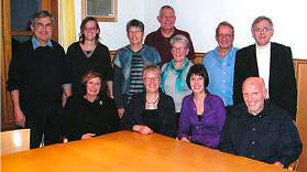 Von links stehend: Reto Enderli; Carmen Stark; Susi Tschopp, Erwin Zürcher, Elsi Nater, Peter Schärli; Heinz Krucker, Innovage-Berater; Von links sitzend: Ena Ringli; Regula Zürcher, Projekt-Leiterin; Miriam Ritetz, Peter Tschopp.
