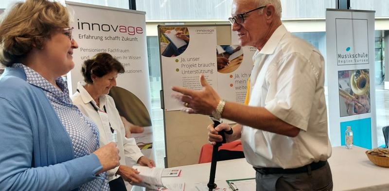 Unter dem Motto ZUSAMMEN STATT ALLEINE fand der regionale Marktplatz 60plus in Sursee statt. Angebote zur Freiwilligenarbeit wurden in grosser Vielfalt vorgestellt. Auch Berater*innen des Innovage Netzwerks Zentralschweiz waren vor Ort und konnten viele Marktbesucher*innen über ihre Arbeit informieren. Eine wunderbare Gelegenheit, um neue Berater*innen und Aufträge zu gewinnen.